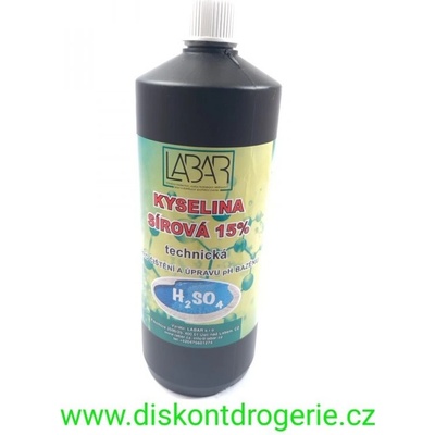 KYSELINA SÍROVÁ 33%. Popis: Základní chemická surovina pro obecně známé použití. Používá se jako elektrolyt do olovněných akumulátorů, k úpravě vody. Balení: PE láhev 0,5 l, 1 l Odstín: čirá kapalina Mytí pomůcek: voda Skladovatelnost: +5 °C až +25 °C v suchu....