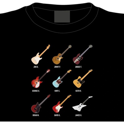 Tričko Nezapomenutelné kytary - tričko s ikonickými kytarami. Devět kytar, devět hlasů – každý z nich napsal kus hudební historie. Bez jejich kytary by nic neznělo stejně. Na...