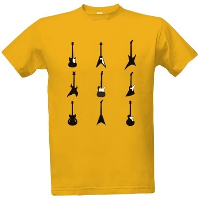 Tričko s potiskem Kytary černo bílé pánské Zlatá