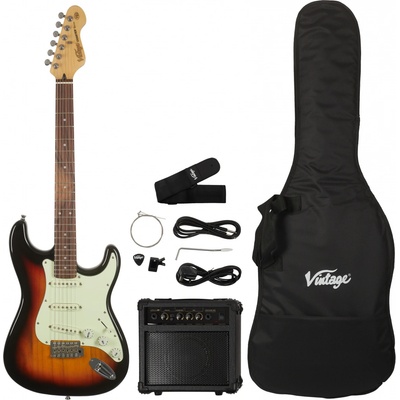 Kytarový komplet Vintage V60 Coaster Series Guitar Pack obsahuje elektrickou kytaru, kytarové kombo Kinsman s výkonem 10W, obal, kytarový popruh, nástrojový kabel, klipovou...