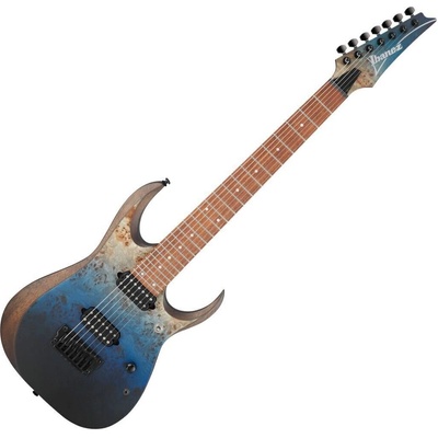 Sedmistrunná elektrická kytara - tělo: jasan, top: topol (burl), krk: wenge/javor/purpleheart, hmatník: eben, snímače: 2x Lundgren M7, barva: Lagoon Fade