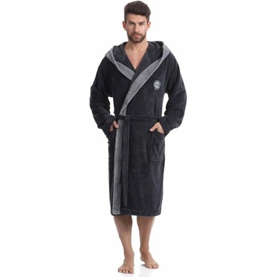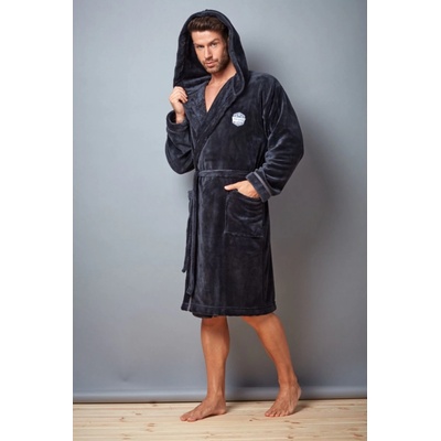 Pánský dlouhý tmavě šedý župan s kapucí.