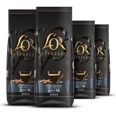 Zrnková káva L´OR Espresso Fortissimo 500g Intenzita 10 Užijte si originální velmi tmavě praženou zrnkovou kávu Jde o pečlivě namíchanou směs tmavé pražené arabicy a kořeněné...