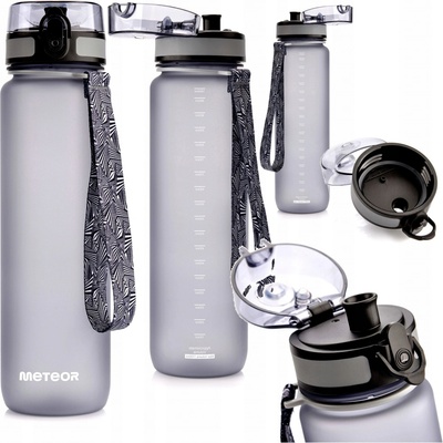 Praktická láhev od značky Meteor, kterou si můžete vzít s sebou na trénink, do posilovny, do školy nebo na kolo (můžete pít jen jednou rukou). Láhev je průhledná s matným...