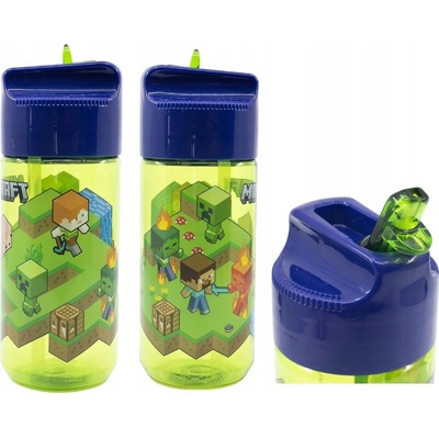 Tritanová láhev na pití o objemu 430 ml s motivem Minecraft. průhledný a vysoce odolný materiál bezpečnostní ovladatelná zátka proti úniku nápoje neobsahuje bisfenol ani...