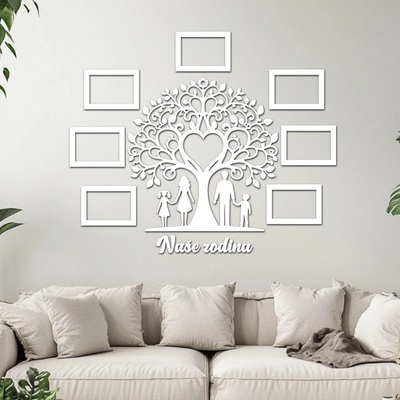 Dřevěný fotorámeček na zeď RODINA - Rodina je místem, kde láska nikdy nekončí. Zachyťte ty nejkrásnější okamžiky svého života do jedinečného dřevěného fotorámečku s nápisem...