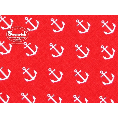 látka na patchwork bílé kotvy na červené, materiál: 100% bavlna, rozměr: 100 x 20 cm, vzor: kotva 25 mm, barva: bílá, červená , Látka na patchwork je vyrobená z kvalitního 100 %...