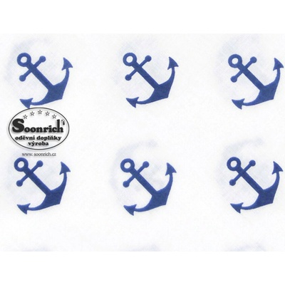 látka na patchwork bílé kotvy na modré, materiál: 100% bavlna, rozměr: 100 x 20 cm, vzor: kotva 25 mm, barva: bílá, modrá , Látka na patchwork je vyrobená z kvalitního 100 %...