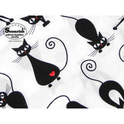 látka na patchwork černé kočky na bílé, materiál: 100% bavlna, rozměr: 100 x 20 cm, vzor: kočka, kočky 8 x 4 cm, barva: černá, bílá, červená , Látka na patchwork je vyrobená z...