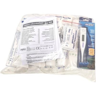 Náplň nástěnné lékárničky (typ 420) obsahuje zdravotnický materiál bez léčiv.