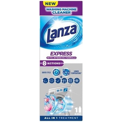 Lanza Express tekutý čistič pračky 8 účinků 250 ml Jeho unikátní složení: 1 Čistí a odstraňuje nečistoty a zbytky pracího přípravku ze všech povrchů uvnitř pračky. 2 Udržuje vnitřní části pračky čisté pro zajištění jejího optimálního provozu. 3 Zanechává příjemnou vůni...