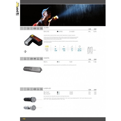 Svítilna RSL-15L/C PANLUX. Třída ochrany 2. Počet světelných zdrojů 15. Barva produktu černá. Napájení bat_3xAAA. Krytí IP 20. Patice světelného zdroje - objímka LED. Provozní...