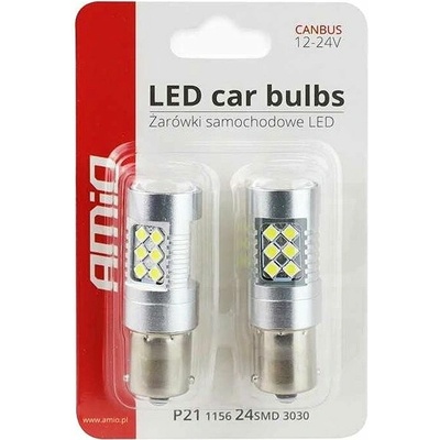 Diodové CAN-BUS žárovky do předních nebo zadních světel automobilu s 15 SMD LED od firmy Amio. Napájení: 12/24V - použité LED 2835 SMD Patice: BA15s (kolíky - výstupky na...