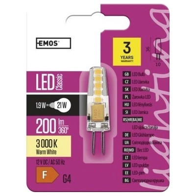 Náhrada za žárovku: 0–25 W Typ: LED žárovka Závit/Patice: G9 Spotřeba energie (W): 1.9 Energetická třída 2021: F Svítivost (ANSI) (lumenů): 200 Barevná teplota: 3 000 K...