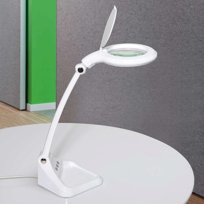 **Specifikace:** Čočka:190x155mm Zvětšení: 5 dioptrií Osvětení: 80x LED Napájení: 220-240VAC/8W Uchycení svorkou za hranu stolu