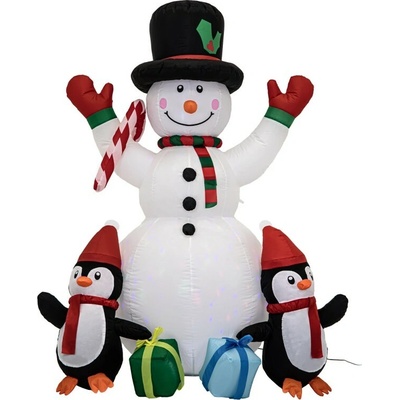 Sněhulák má vestavěný kompresor, který ho naplňuje vzduchem. Navíc má dekorace vestavěný otočný LED projektor, který ji osvětluje zevnitř. Po setmění sněhulák dodává atmosféru...