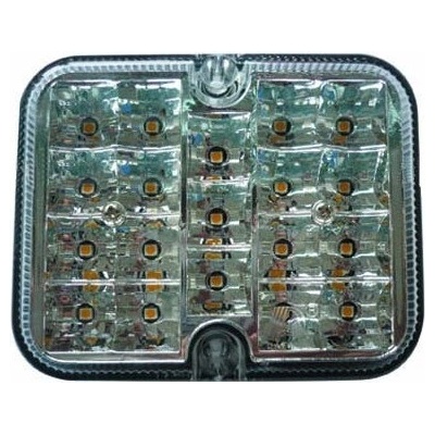 bílé couvací LED světlo pro 12V a 24V spotřeba při 13,8V: 170mA (2,35W) světelný tok: 300lm 19 vysocesvítivých LED diod s usměrněným světelným tokem připevnění na dva otvory prům. 4mm s roztečí 66mm rozměr: 110x81x29mm homologace E4