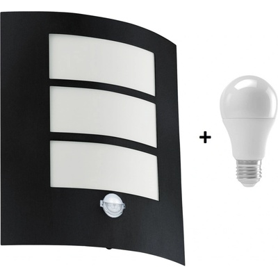 Venkovní svítidlo Eglo 88142 CITY Nástěné venkovní svítidlo od rakouského výrobce svítidel Eglo Svítidlo obsahuje pohybové čidlo. Senzor snímá pod úhlem 110°, max. dosah je 8 metrů. Svítidlo EGLO 88142 CITY má krytí proti vlhkosti IP44. Svítidlo dodáme včetně LED...
