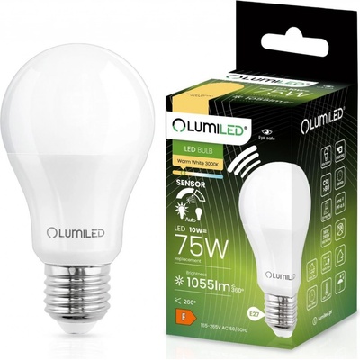 LED žárovka LED E27 A60 10W = 75W 1055lm 3000K Teplá 200° s pohybovým čidlem LUMILEDMIKROVLNNÝ SENZOR POHYBU A SOUMRAK:Hlavní předností prezentované LED žárovky je vestavěný mikrovlnný senzor pohybu a soumraku. Použití snímače pohybu a soumraku v žárovce ji činí ještě...