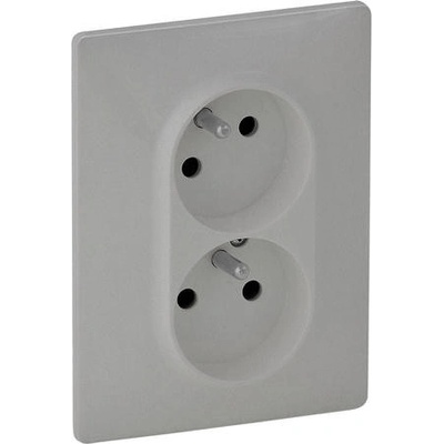 Dvojzásuvky 2 x 2P + T s dětskou ochranou Dvojzásuvka s horní zásuvkou pootočenou o 30°. Kompletní produkt s krytem a rámečkem. Automatické svorky.Barva: HliníkIP: IP20