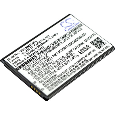 Baterie Cameron Sino CS-LKM150SL EAN: 4894128130291 Napětí: 3.85 V Typ: Li-Ion Kapacita: 2000 mAh Energie: 7.70 Wh Výška: 75 mm Šířka: 50 mm Hloubka: 4 mm Hmotnost bez obalu: 39 g Hmotnost s obalem: 89 g Kompatibilní zařízení: Lg Rebel 2 Lg L57bl Lg L58vl Lg Aristo Lg...