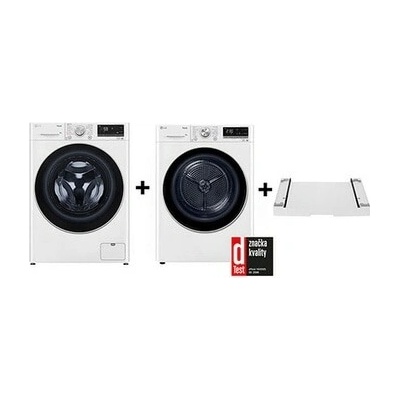 Objevte LG prací set: pračka FA49V5VW1W 9 kg a sušička RC91V9AV3N 8 kg s funkcemi Steam™, TurboWash™, AI DD™ a ThinQ™. Mezikus zdarma pro úsporu místa.