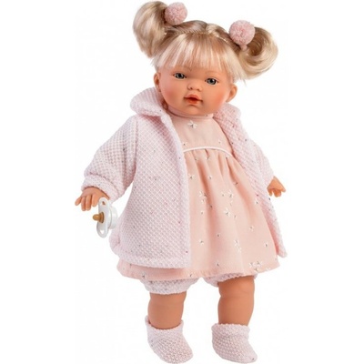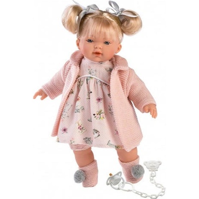 Mluvící a plačící panenka (po vyjmutí pojistky ihned funkční) s měkkým látkovým tělem a s vlásky po celé hlavě. Hlava a končetiny jsou vyrobené z kvalitního měkčeného vinylu. Po vytažení dudlíku z úst začne panenka říkat „mama“, „papa“ a vydávat reálný zvuk plačícího...