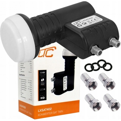 LTC LNB Twin 0,1 dB, Black Převodník SAT TWIN LTC BLACK je celopásmové zařízení, přizpůsobené pro příjem satelitních programů vysílaných ve vertikální a horizontální...