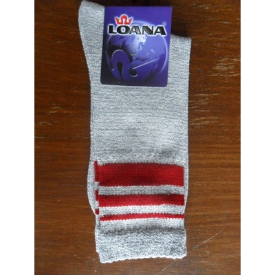 LOANA 52385- dámské slabé sportovní ponožky českého výrobce ,s šitou špičkou a převěšeným lemem. Melírované ponožky s třemi červenými pruhy na lýtkové části. Složení:63%bavlna...