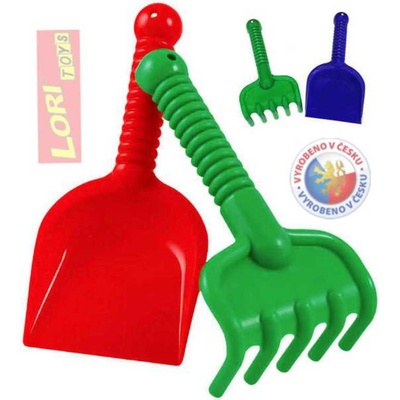 Dětská plastová sada s lopatkou z plastu a hrabičkami na písek Lori 205 v různých barevných provedeních. Hurá na pískoviště! Aby na něm byla dobrá zábava, nesmí tam chybět...