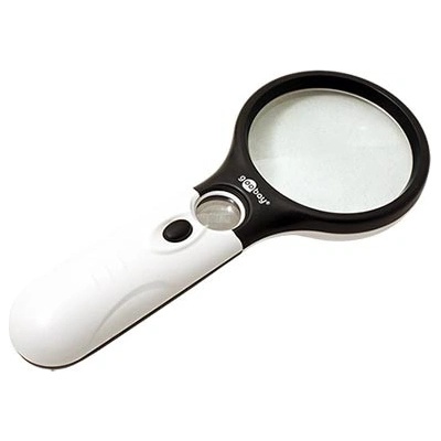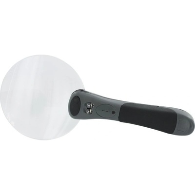 Příruční dvojitá lupa s LED osvětlením.; Použití: Určená pro jednoduché přiblížení detailů. Obsahuje 2 lupy (průměr 75 mm a průměr 22mm). Úsporná díky LED...