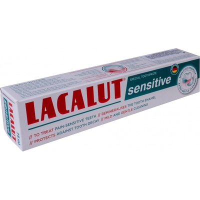 Lacalut Sensitive zubní pasta 75 ml pro citlivé zuby, která poskytuje okamžitou úlevu od bolesti a zároveň dlouhodobou ochranu před zubním kazem a dásňovými problémy. Tato pasta...