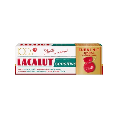 Oslavte 100 let značky Lacalut. Sensitive zubní pasta chrání citlivé zubní krčky před zubním kazem. Nyní s dárkem zubní nit zdarma.
