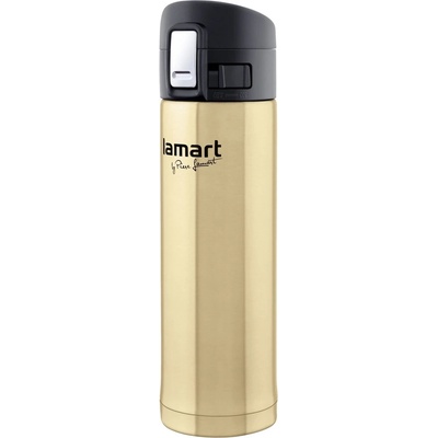 Termoska, 0,42L, vysoce kvalitní nerezový/plastový materiál, pojistkový mechanismus, tlačítkový mechanismus otevření, zlatá/černá barva