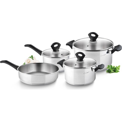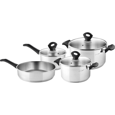 Sada nádobí, 7 ks, vhodné pro všechny typy sporáků včetně indukčních, vhodné do myčky na nádobí, 3 roky záruka, materiál nerez / sklo, objem 1,6 / 3,2 / 5,6 / 2,4 l, # 16 / 20 / 24 / 24 cm