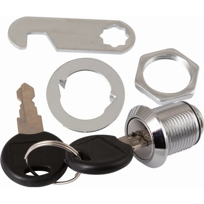 Celokovový lamelový zámek vhodný na plechový nábytek, skříně/skříňky o šířce 22 mm, výšce 22 mm a hloubce 30 mm. Délka těla zámku 25 mm se závitem M16 s průměrem vložky 19 mm.