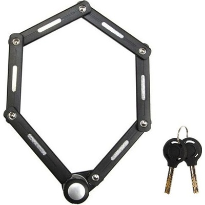 Bezpečnostní lamelový skládací zámek je zvlášť odolný a určený pro kolo. Lamely o síle 6 mm a délce 690 mm se skládají z ocelových plátů (3,4 mm) a plastových pouzder (2,6 mm)....