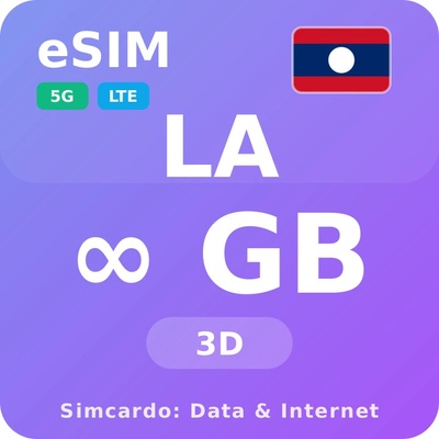 Neomezený mobilní datový plán pro Laos platný na 5 dní. Získejte rychlý a spolehlivý internet v Laosu s okamžitou aktivací travel eSIM. Okamžité doručení eSIM e-mailem. Žádná...