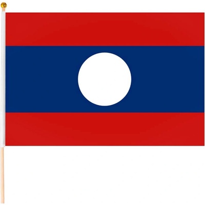 Vlajka Laoské lidově demokratické republiky Rozměry vlajky: 45 x 30 cmMateriál: 100% polyesterDélka dřevěné tyče: 61 cm *Horní zakončení vlajky obsahuje zlatou plastovou kouli...