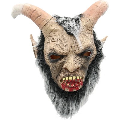 Strašidelná latexová maska zubatého pekelníka, vhodná zejména na vánoční besídky či pekelné pohádky. Pojmy spojené s tímto produktem: maska, čert, latex, satan, zubatý čert,...