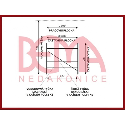 Pracovní výška A = 2,80 m Výška podlahy B = 0,80 m Celková výška C = 1,70 m Transportní rozměr B = 0,67 m T = 0,20 m L = 1,80 m Bezpečnost a použití Při použití lešení...