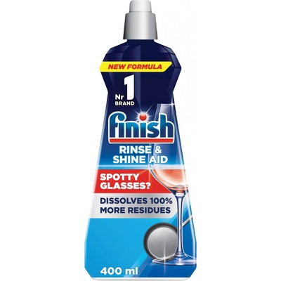 Finish leštidlo do myčky 400 ml Rinse & Shine Aid Oplachuje zbytky, urychluje schnutí, bojuje se skvrnami od vody, ochraňuje před povlakem a zanechává oslnivý lesk. Pro...