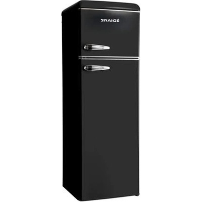 Stylová retro lednice v černém provedení, která kombinuje praktičnost a úsporu energie pro běžnou domácnost.
