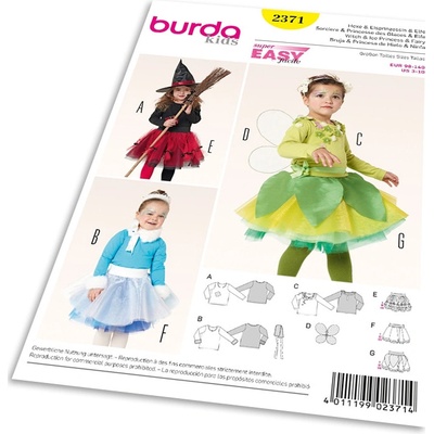 Střih Burda žlutý 2371 - dětský kostým čarodějnice, ledová královna, víla je soubor střihů pro ušití dětských kostýmů. Střihy jsou natištěné na kvalitním křídovém papíru. Díky...