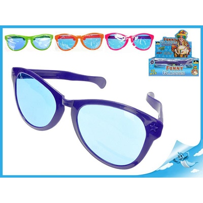 Srandovní plastové brýle s modrým zabarvením skel, ve čtyřech barevných variantách, vhodné jako doplněk na karneval či párty, pro děti. Baleno v sáčku. Karneval neboli...