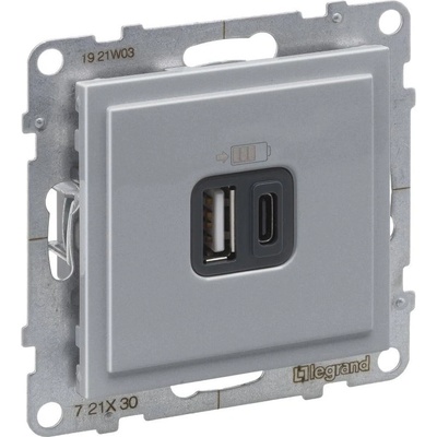 LEGRAND 721330 SUNO USB nabíječka dvojitá typ A+C, hliník