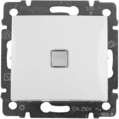 Dodáváno se zelenou doutnavkou 0,5 mA–230 V obj.č. 775897 – orientační funkce.Typ: Kolébkový přepínač / tlačítkoBarva: BíláIP: IP31Počet ovládacích přepínačů: 1Materiál:...