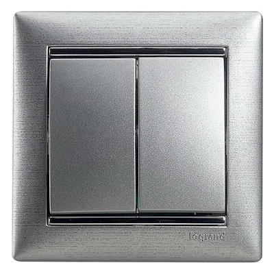 VALENA střídavý dvojitý přepínač č.6+6 Legrand 770108 (EAN 3245067701089) v barvě hliník nabízí 2 páčky pro přepínání obvodů a jmenovitý proud 10 A. Určen pro montáž pod omítku...