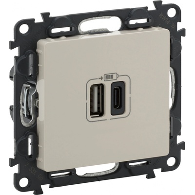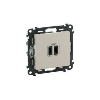 Legrand 753206 dvojitá USB A+C nabíječka v béžové barvě ve stylu Valena Life. Upevnění pomocí šroubů. Obsahuje šroubové svorky.