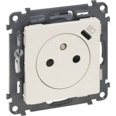 Legrand 753236 jednonásobná zásuvka s USB-C nabíjením v béžové barvě ve stylu Valena Life. Upevnění pomocí šroubů. Obsahuje bezšroubové svorky.